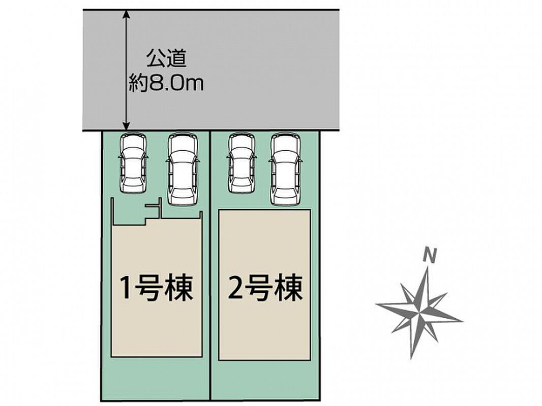 | 駐車場 | 2台 | 道路の幅員 | 北8.0m公道 |
