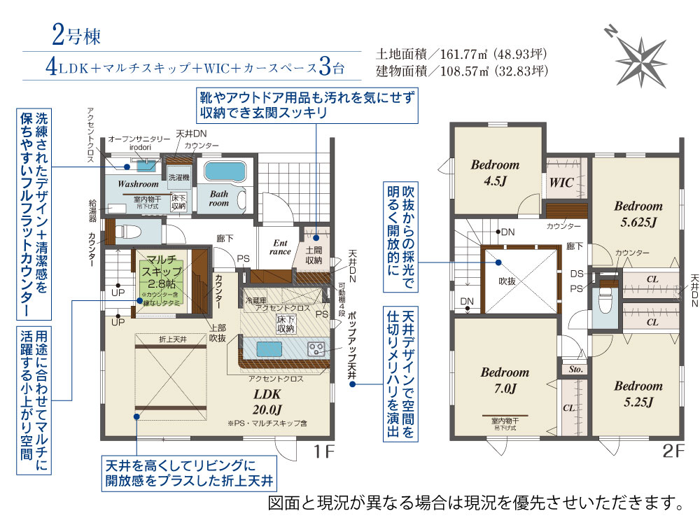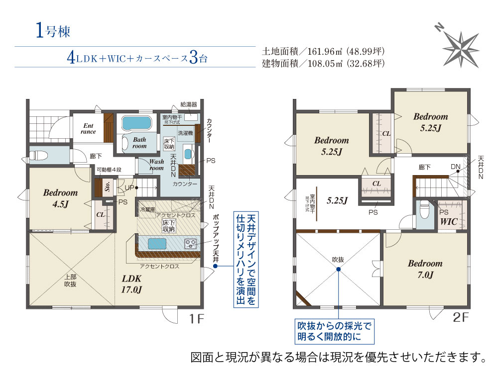 | 建物面積 | 108.05m2(約32.68坪)~108.57m2(約32.84坪) | 土地面積 | 161.77m2(約48.93坪)~161.96m2(約48.99坪) |