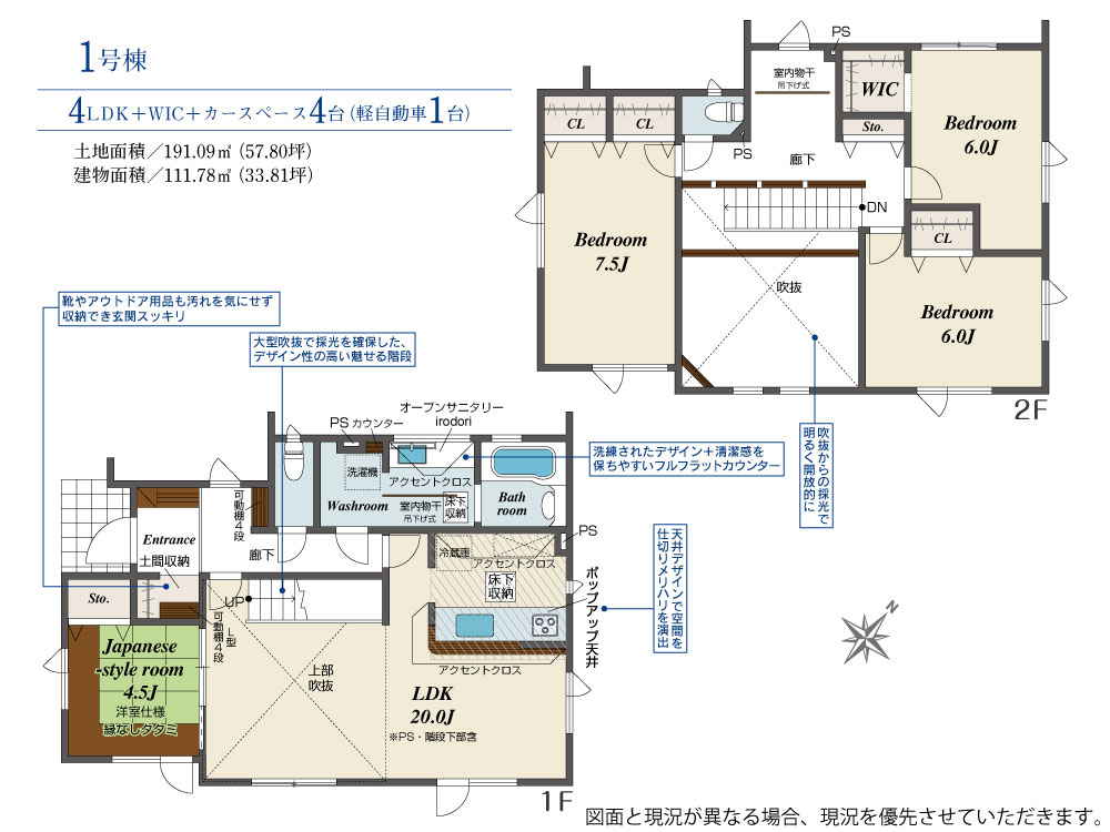 | 建物面積 | 111.78m2(約33.81坪) | 土地面積 | 191.09m2(約57.80坪) |