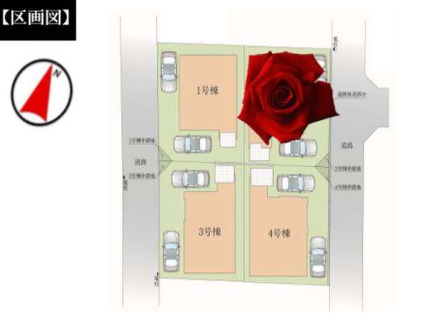 | 駐車場 | 1台 ~ 2台 | 道路の幅員 | 1・3号棟:南西4.0m公道、4号棟北3.6m公道※幅員4.0mにセットバック予定 |