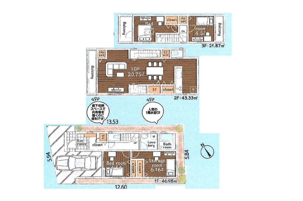 | 間取り | 3LDKS~3LDKS | 建物構造 | 木造3階建 |