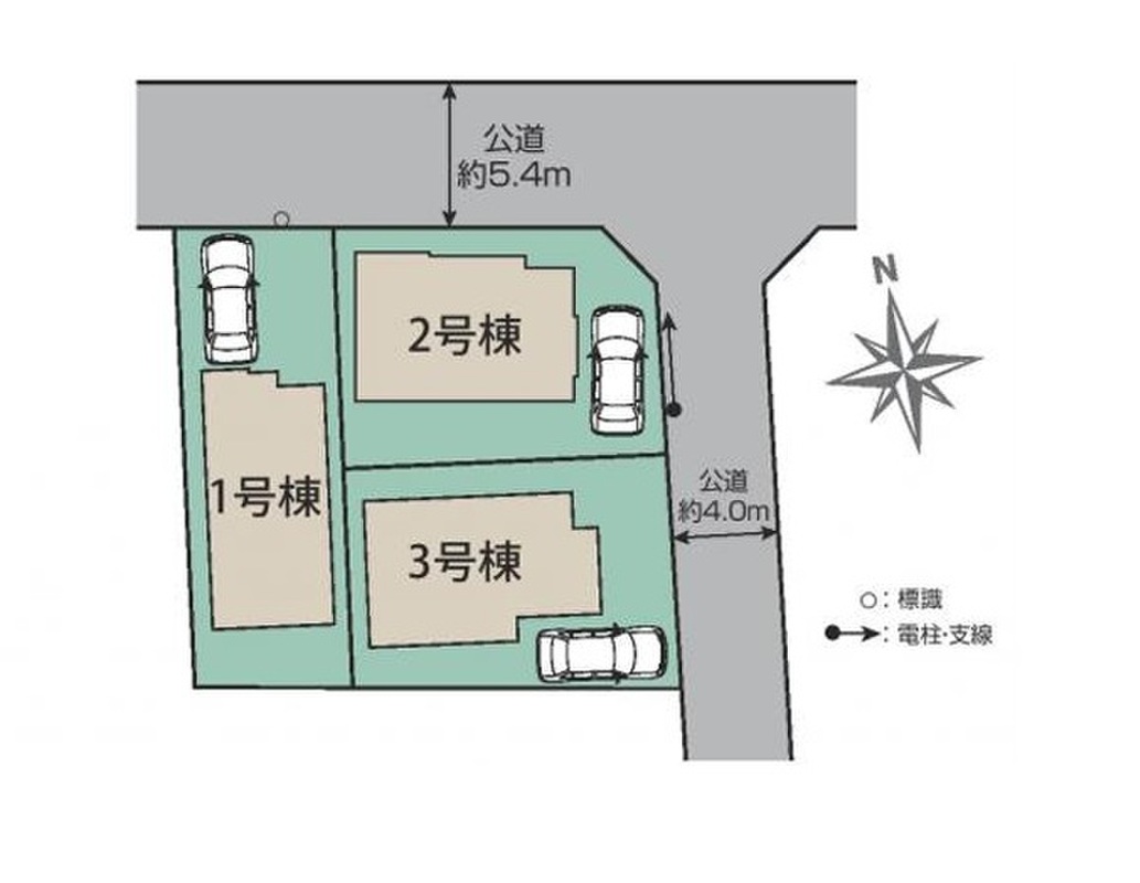 | 駐車場 | 1台 | 道路の幅員 | 東側公道4m・北側公道5.4m |