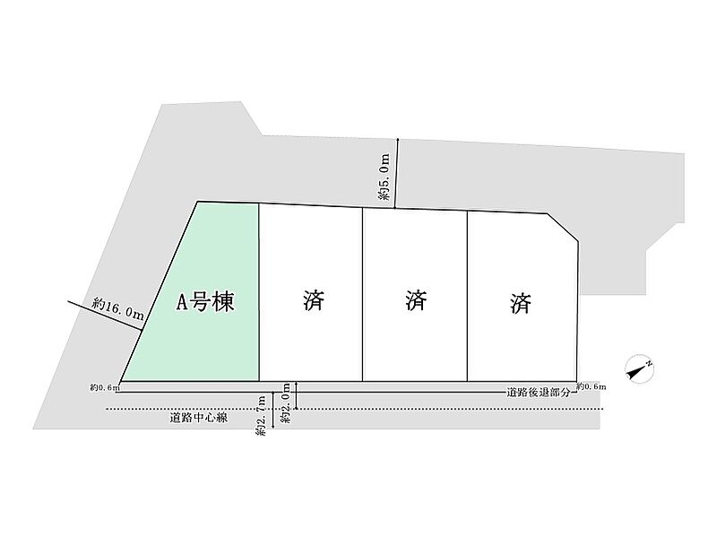 | 駐車場 | 1台 | 道路の幅員 | 南西側約16m公道 北西側約5m公道 南東側約4m公道 |