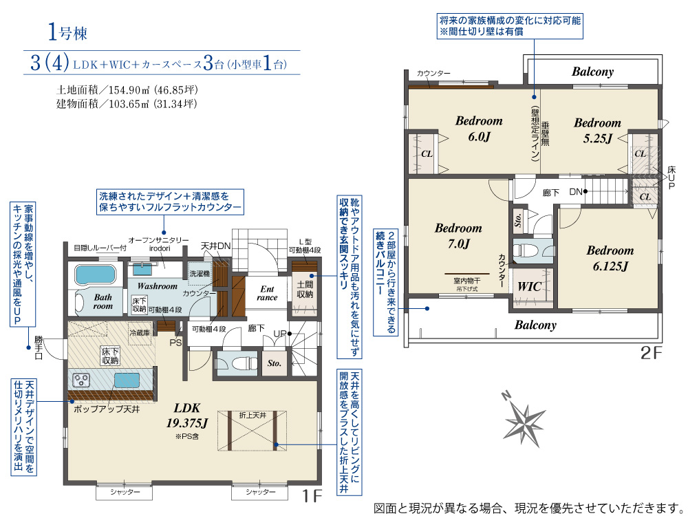 | 建物面積 | 103.65m2(約31.35坪) | 土地面積 | 154.90m2(約46.85坪) |