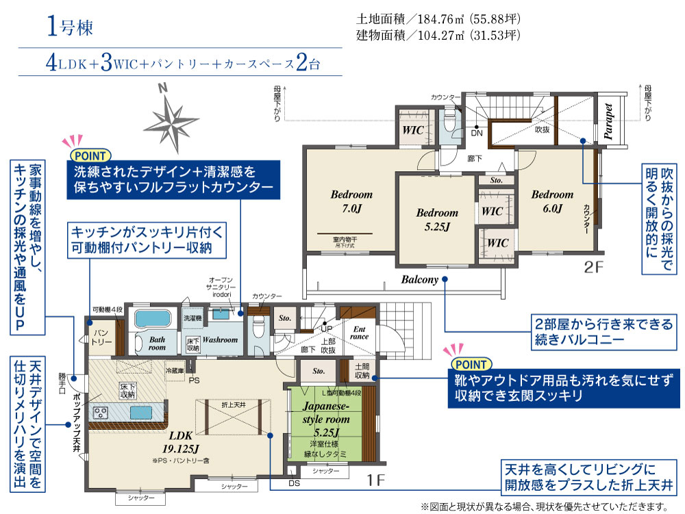 | 建物面積 | 104.27m2(約31.54坪) | 土地面積 | 184.76m2(約55.88坪) |