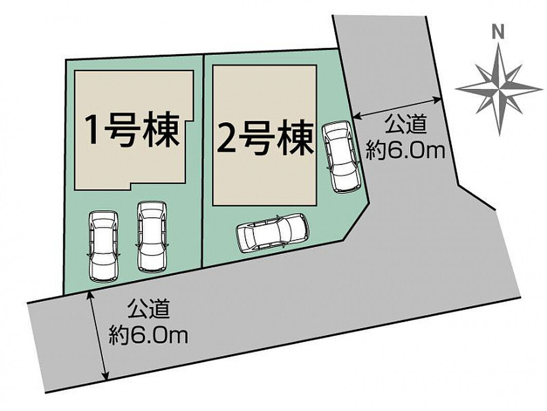 | 駐車場 | 2台 | 道路の幅員 | 南6.0m公道、東6.0m公道 |