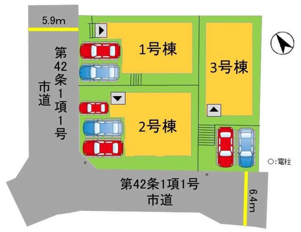 | 駐車場 | 2台 ~ 3台 | 道路の幅員 | 道路幅5.9m・6.4m アスファルト舗装 |