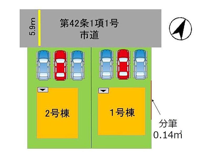 | 駐車場 | 2台 ~ 3台 | 道路の幅員 | 道路幅5.9m アスファルト舗装 |
