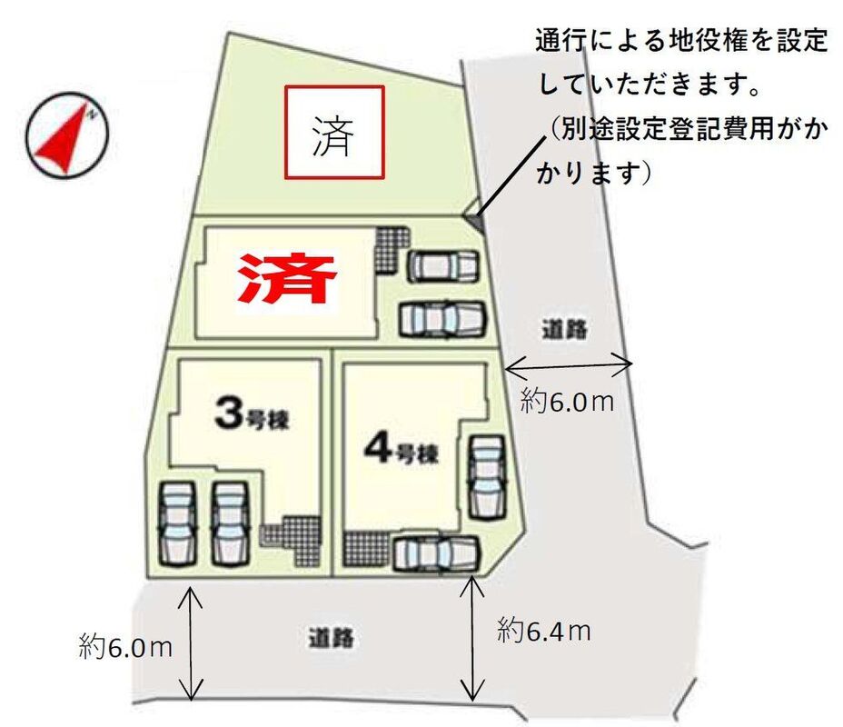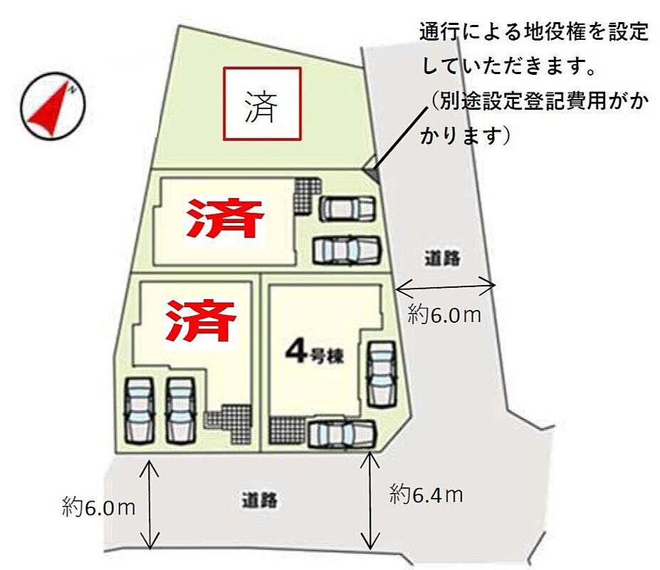 | 駐車場 | 1台 ~ 2台 | 道路の幅員 | 道路幅6.0m・6.4m アスファルト舗装 |