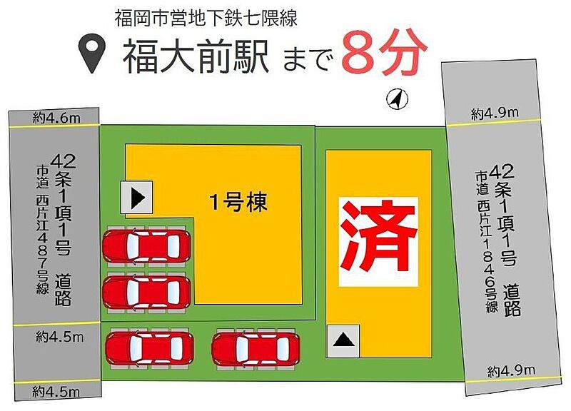 | 駐車場 | 1台 ~ 2台 | 道路の幅員 | 道路幅4.4m・4.9m アスファルト舗装 |