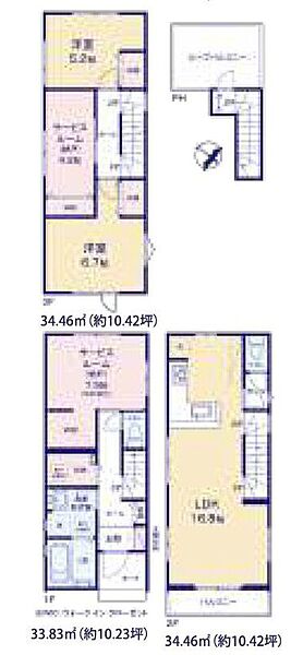 | 建物面積 | 106.39m2・106.47m2 | 土地面積 | 74.95m2 |