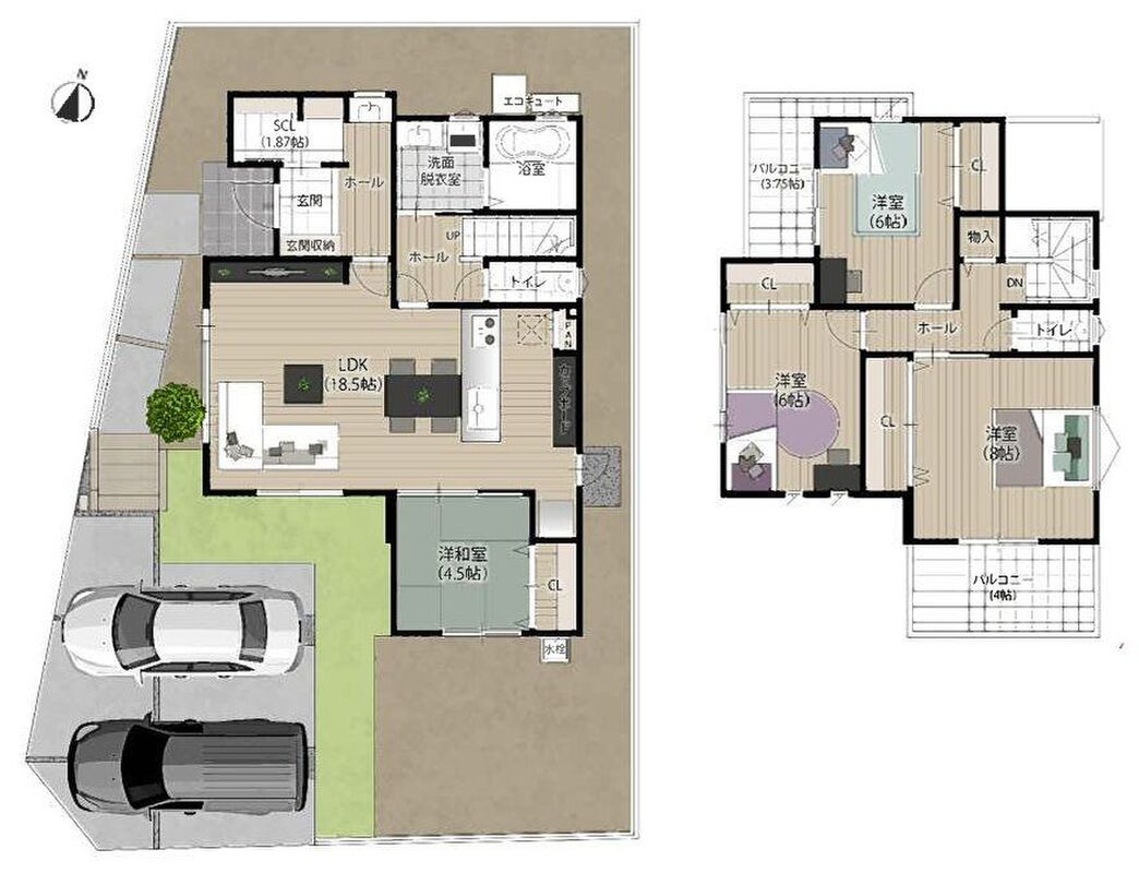 - ※完成予想図やCG合成画像は、門塀・植栽・庭・外観等、実際とは多少異なる場合があります。