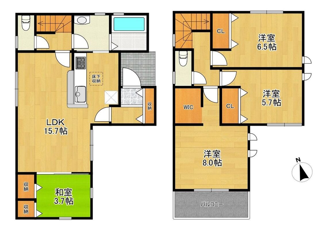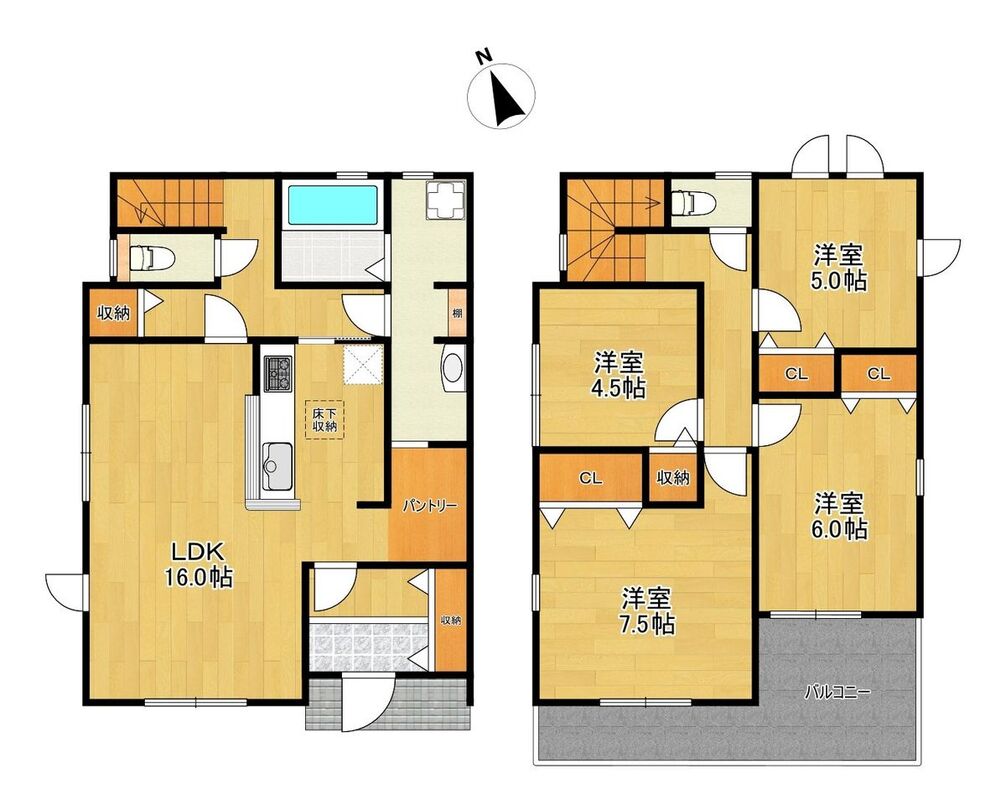 | 建物面積 | 96.05m2・103.50m2 | 土地面積 | 128.48m2・131.15m2 |
