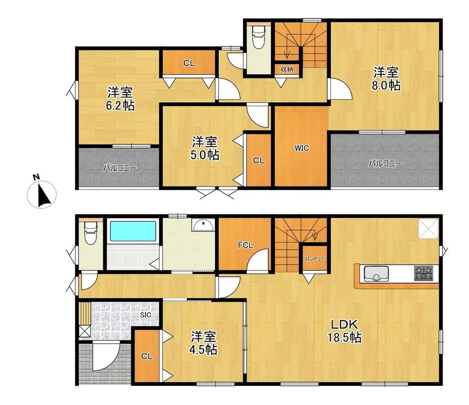 ●WICやファミリークローク、SICなど収納豊富●南向き2面バルコニー●お車4台駐車可能、前面道路6m!