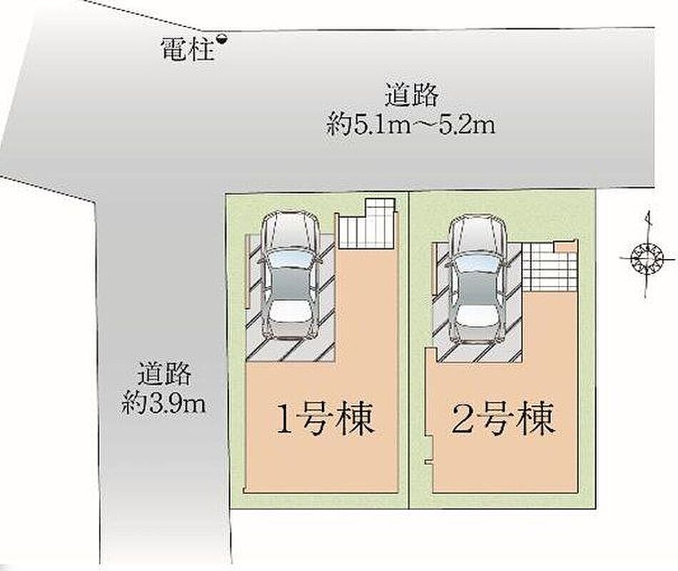 | 建物面積 | 105.57m2・107.17m2 | 土地面積 | 56.83m2・56.89m2 |