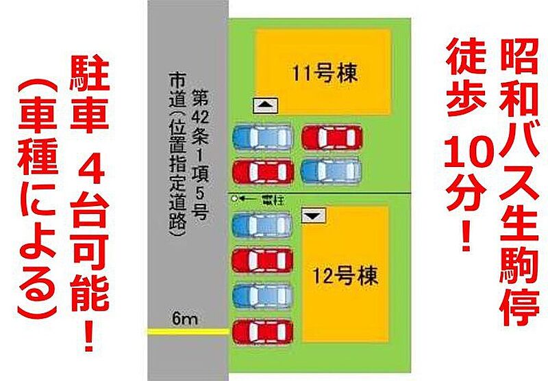 | 駐車場 | - | 道路の幅員 | 道路幅6.0m アスファルト舗装 |