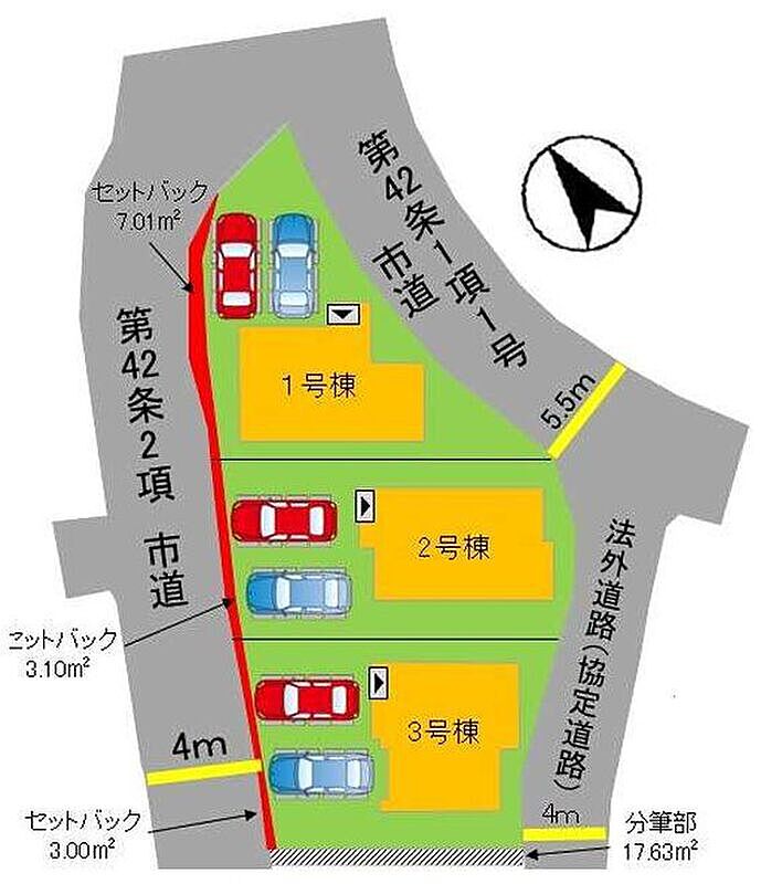| 駐車場 | - | 道路の幅員 | 道路幅4.0m~5.5m アスファルト舗装 |