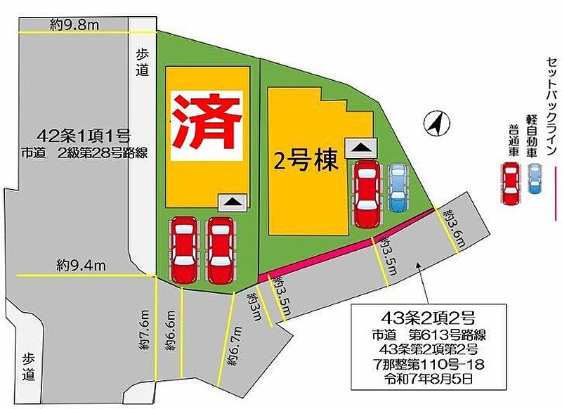 | 駐車場 | - | 道路の幅員 | 道路幅3.0m~9.8m アスファルト舗装 |