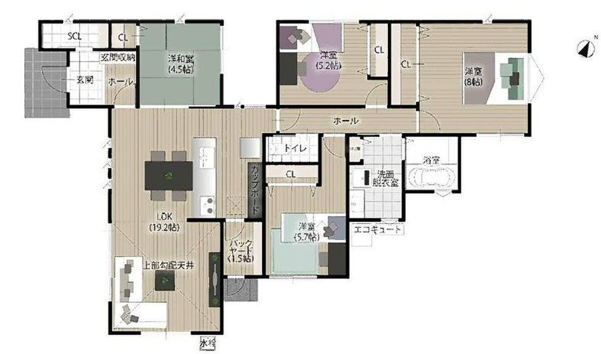 - ※完成予想図やCG合成画像は、門塀・植栽・庭・外観等、実際とは多少異なる場合があります。
