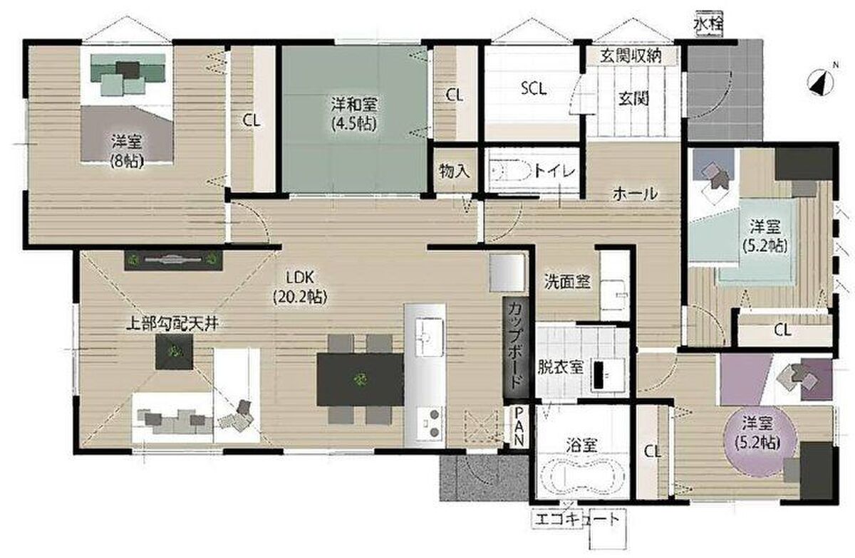 ●火を使わない安心のオール電化住宅●省エネのエコキュート採用●WICやSIC、リネン庫など収納豊富!
