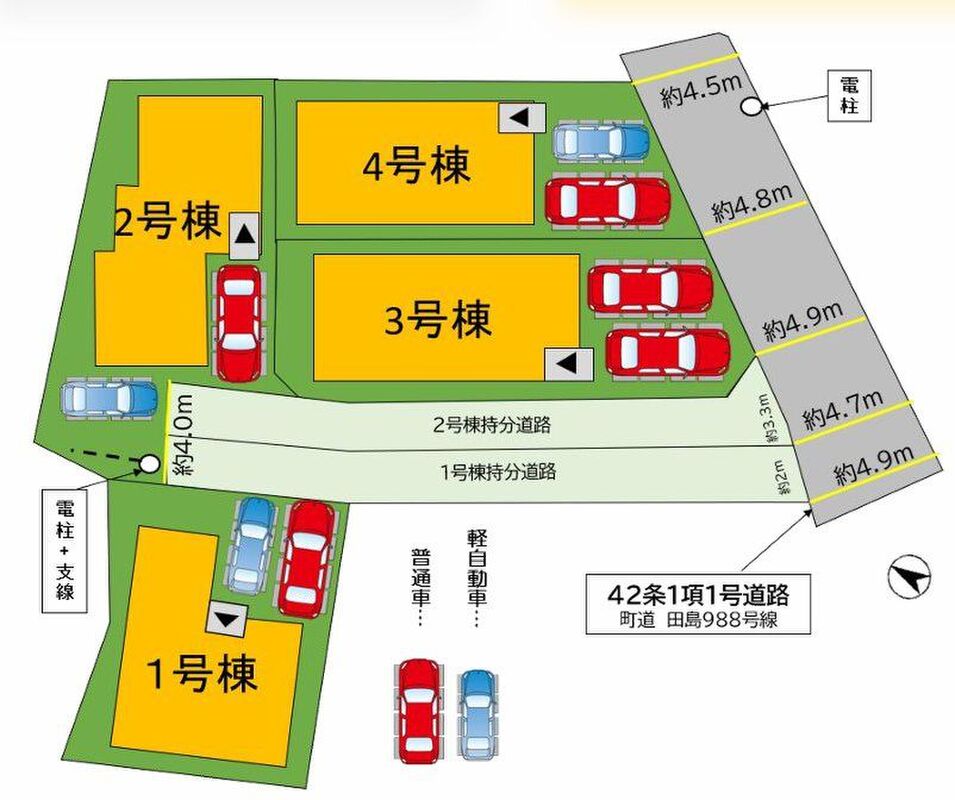 | 駐車場 | - | 道路の幅員 | 道路幅4.5m~4.7m アスファルト舗装 |