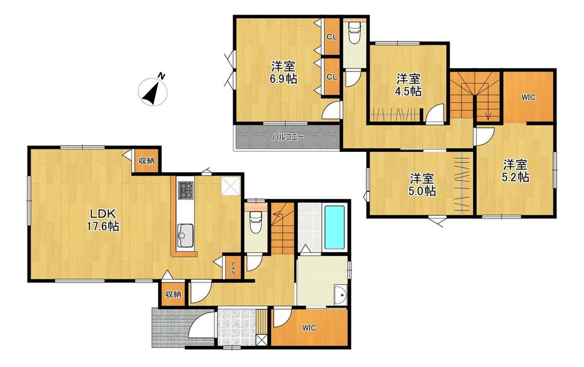 ●WICやパントリー完備で収納充実●全棟お車2台駐車可能です●田島小学校まで徒歩約8分!