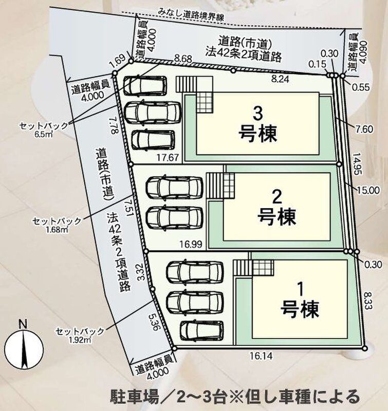 | 駐車場 | - | 道路の幅員 | 道路幅4.0m アスファルト舗装 |