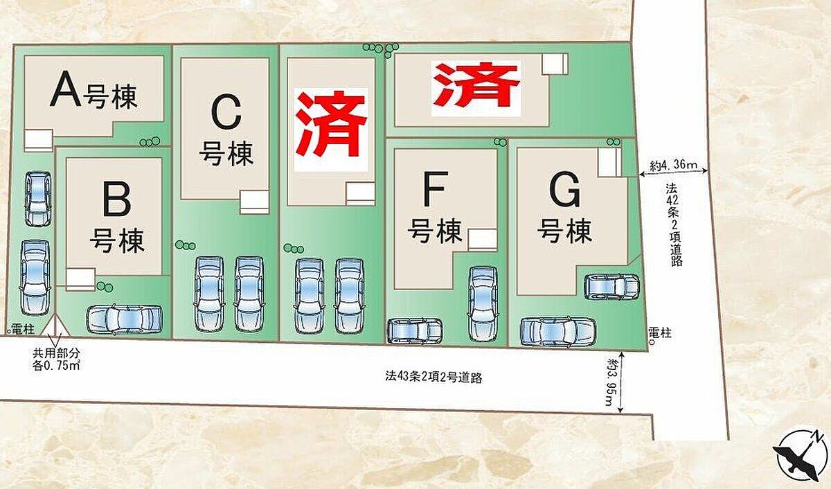| 建物面積 | 74.52m2~102.26m2 | 土地面積 | 86.94m2~122.00m2 |
