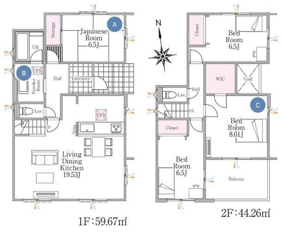 | 建物面積 | 109.30m2~114.27m2 | 土地面積 | 168.26m2~186.95m2 |