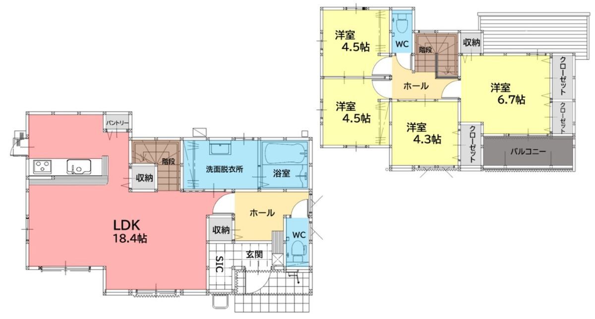 | 建物面積 | 95.41m2・98.25m2 | 土地面積 | 138.95m2・145.42m2 |