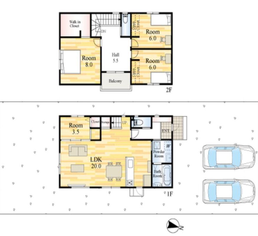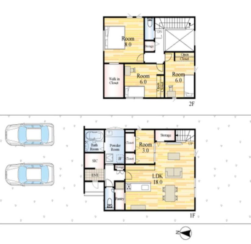 | 建物面積 | 106.82m2~115.40m2 | 土地面積 | 201.46m2~206.06m2 |