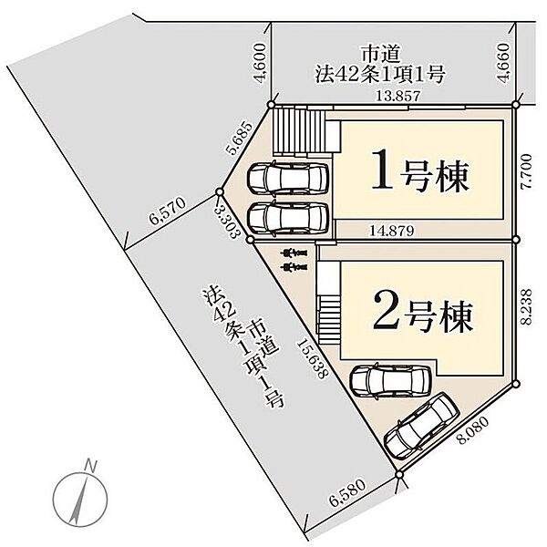 | 建物面積 | 93.98m2・98.53m2 | 土地面積 | 118.97m2・124.22m2 |