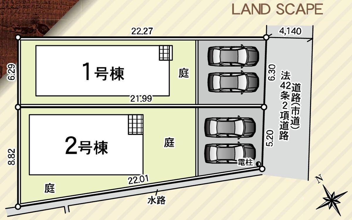 | 建物面積 | 100.03m2・104.49m2 | 土地面積 | 139.44m2・153.16m2 |
