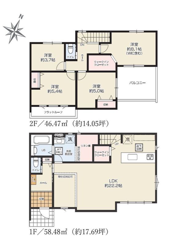 | 建物面積 | 104.95m2・107.23m2 | 土地面積 | 172.66m2・175.08m2 |
