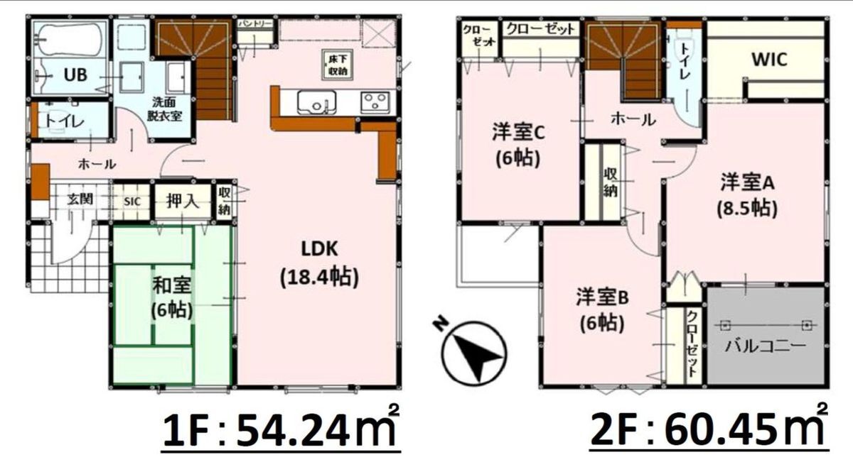 | 建物面積 | 100.61m2・114.69m2 | 土地面積 | 221.05m2・242.66m2 |