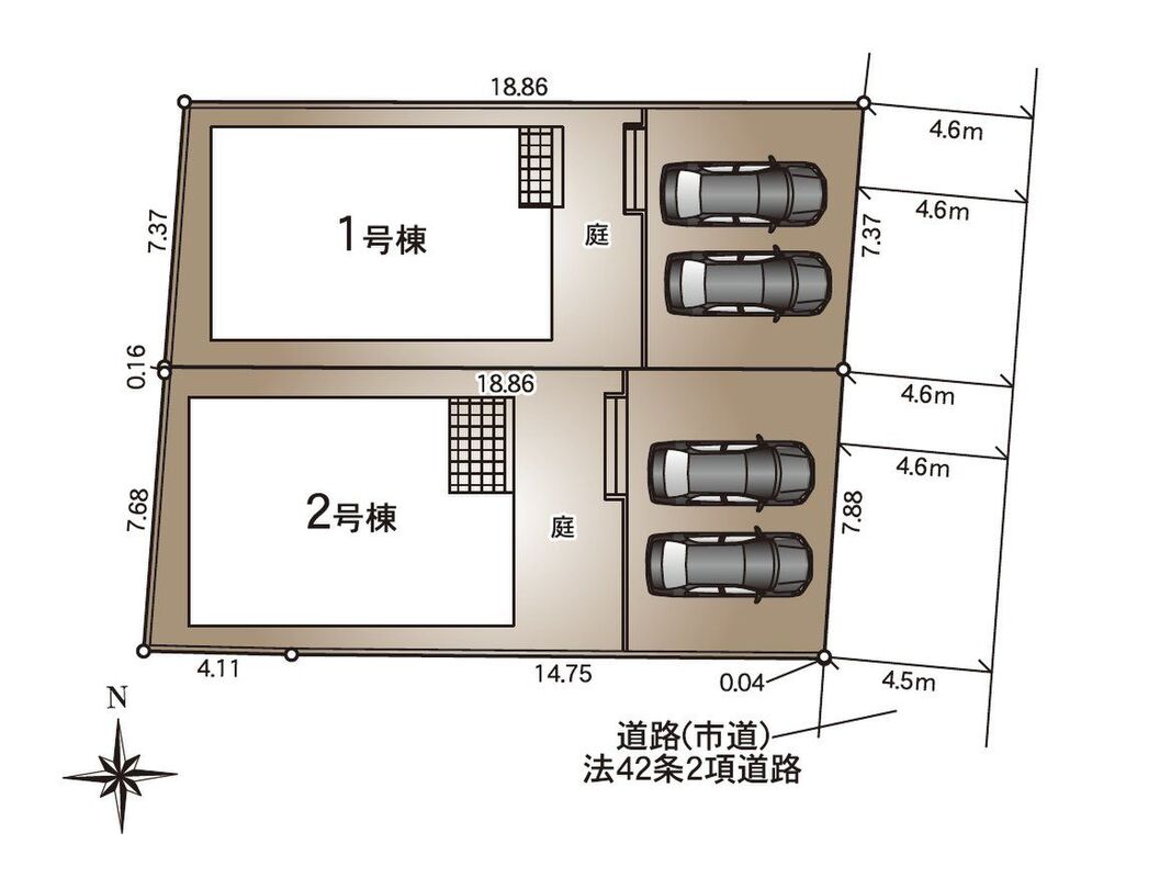 | 駐車場 | - | 道路の幅員 | 道路幅4.5m~4.6m アスファルト舗装 |