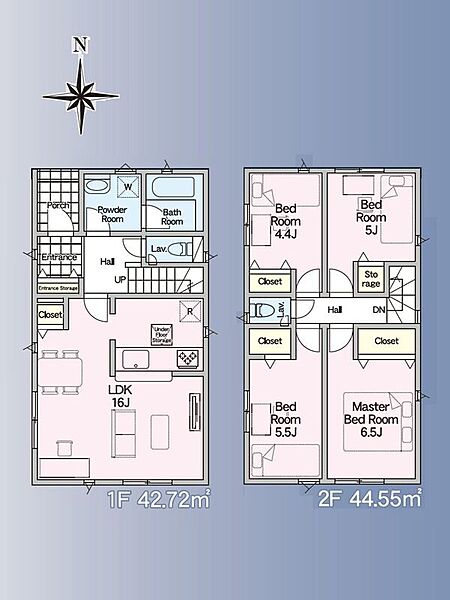 | 建物面積 | 87.27m2・91.72m2 | 土地面積 | 107.63m2・109.59m2(公簿) |