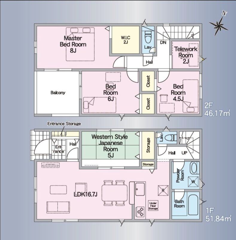 | 建物面積 | 98.01m2・102.45m2 | 土地面積 | 132.88m2~158.24m2 |