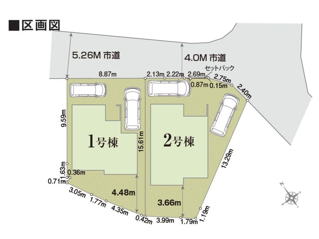| 駐車場 | - | 道路の幅員 | 道路幅4.0m セットバック面積:2号棟0.087m2 |
