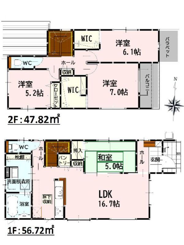 | 建物面積 | 103.50m2・104.54m2 | 土地面積 | 173.05m2・180.25m2 |