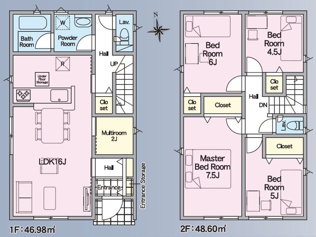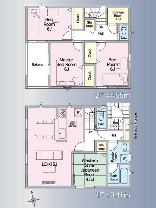 | 建物面積 | 93.96m2・95.58m2 | 土地面積 | 107.88m2・111.66m2(公簿) |