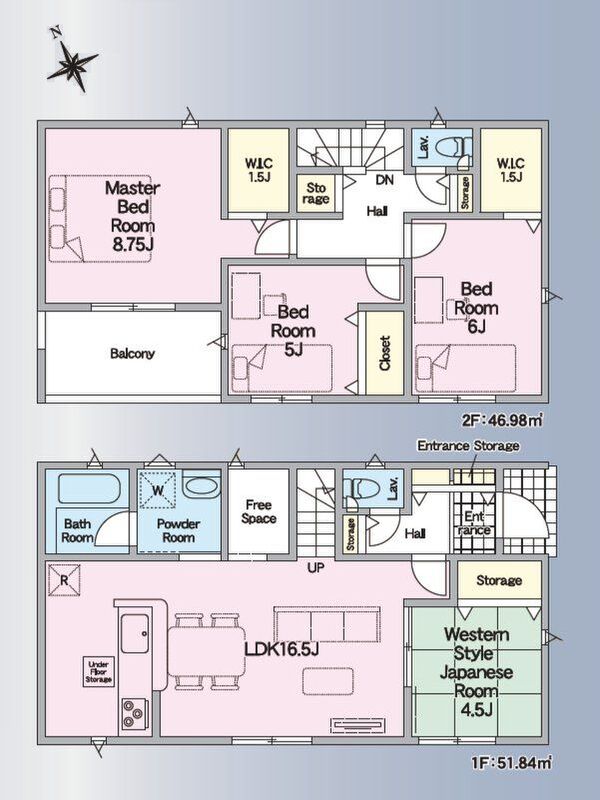 | 建物面積 | 98.01m2・98.82m2 | 土地面積 | 163.77m2~172.04m2 |
