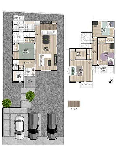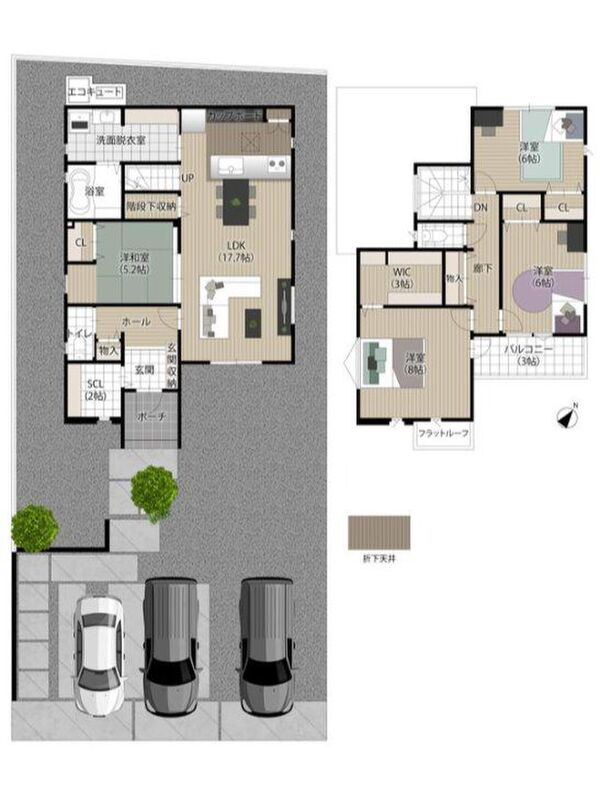 - ※完成予想図やCG合成画像は、門塀・植栽・庭・外観等、実際とは多少異なる場合があります。