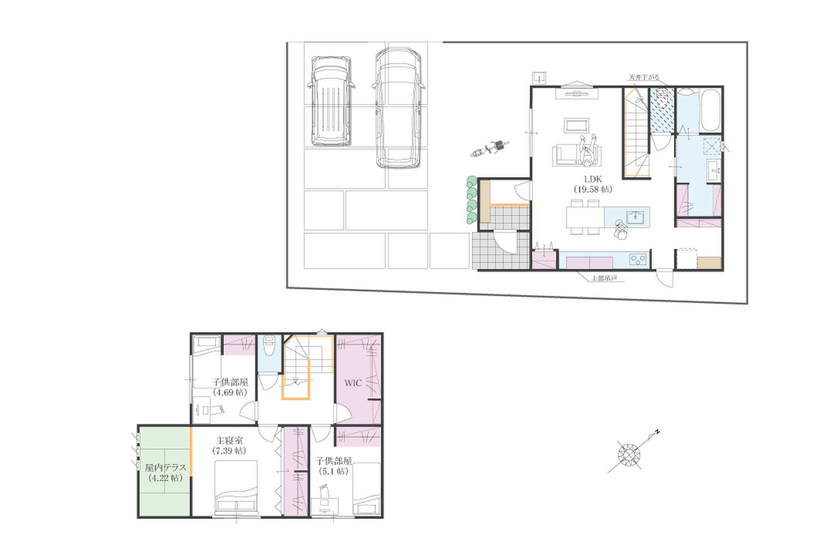 - ※完成予想図やCG合成画像は、門塀・植栽・庭・外観等、実際とは多少異なる場合があります。