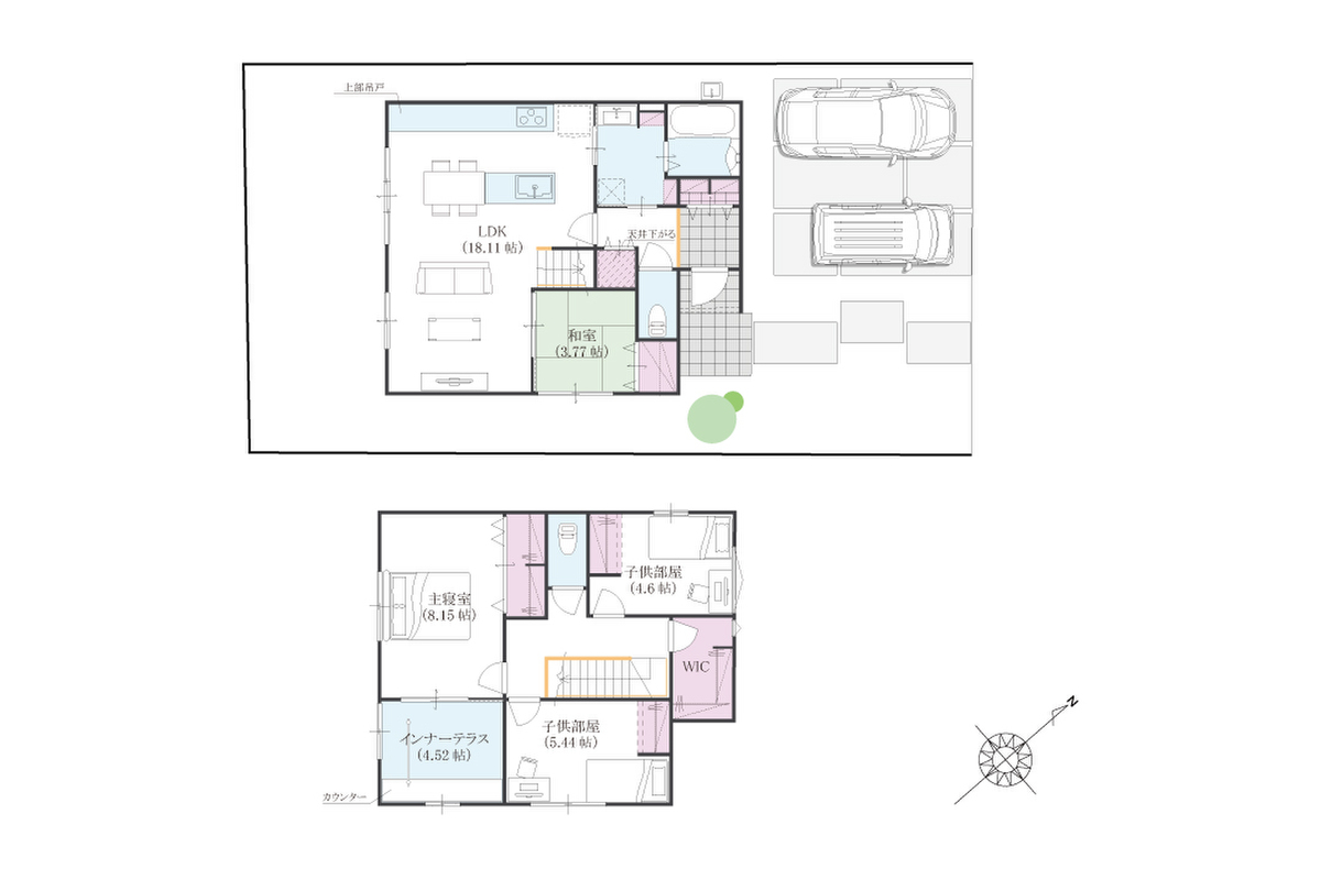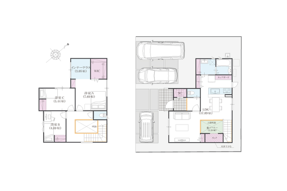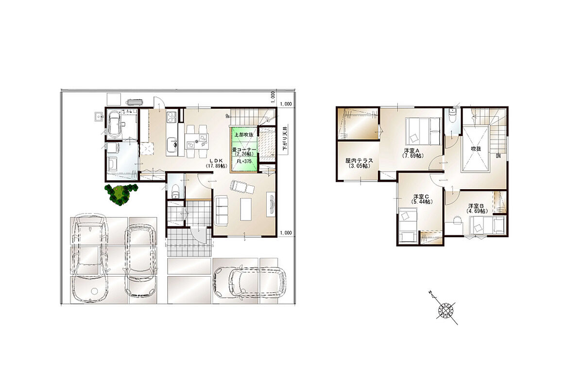 | 建物面積 | 100.25m2(8号地)~111.38m2(11号地) | 土地面積 | 148.13m2(7号地)~172.12m2(8号地) |
