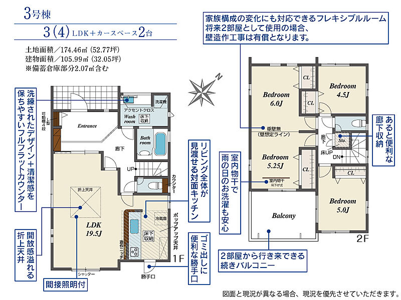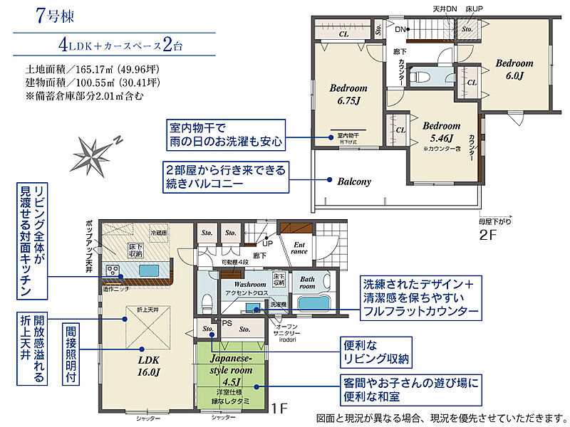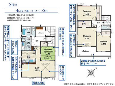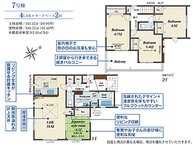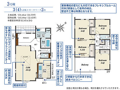 | 建物面積 | 100.55m2(約30.41坪)~106.35m2(約32.17坪) | 土地面積 | 165.17m2(約49.96坪)~174.46m2(約52.77坪) |