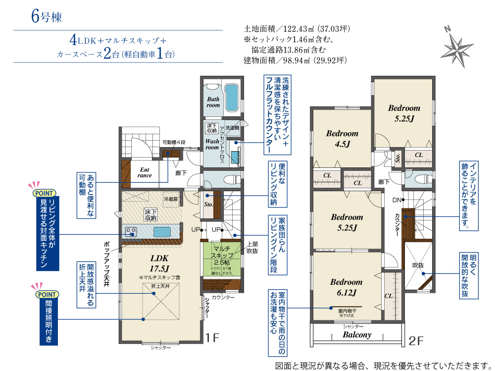 | 建物面積 | 98.94m2(約29.92坪)~123.79m2(約37.44坪) | 土地面積 | 119.07m2(約36.01坪)~139.02m2(約42.05坪) |