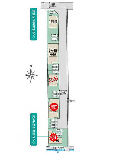 | 駐車場 | 3台 | 道路の幅員 | 東6.0m公道、北6.0m公道 |