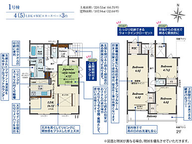 | 建物面積 | 104.54m2(約31.62坪)~107.94m2(約32.65坪) | 土地面積 | 200.05m2(約60.51坪)~220.53m2(約66.71坪) |