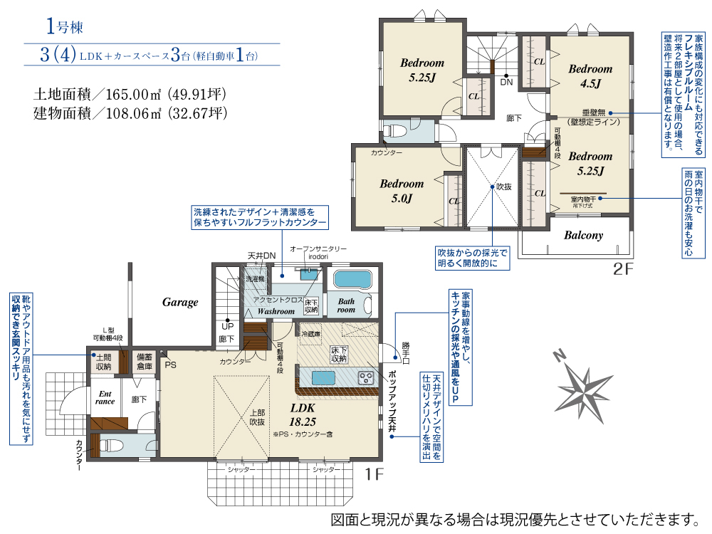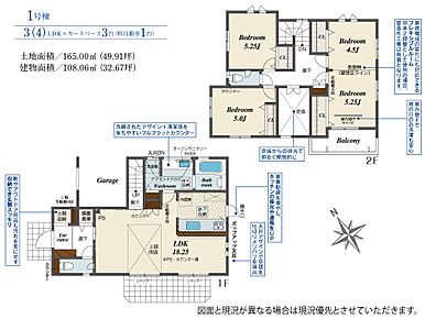 | 建物面積 | 108.06m2(約32.68坪) | 土地面積 | 165.00m2(約49.91坪) |